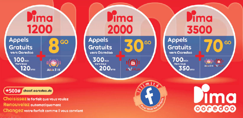 Ooredoo a lancé mercredi sa nouvelle offre Dima Ooredoo. Cette dernière permetau client de basculer librement vers le forfait qui lui convient le mieux et cela en toute simplicité.
